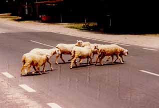sheep were crossing the street in front of the cybercafe we found as we walked