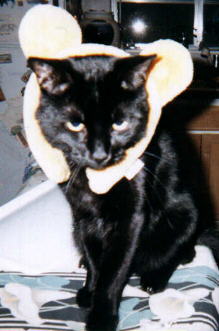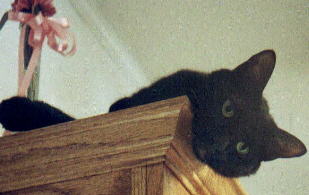 My cat Midnight aka Bud, has a great personality and keeps me laughing. He is part siamese and is very vocal. He loves to play fetch, chase his tail and most of all eat. He is a real character! He is a pretty big cat, weighs in at 12-14 pounds and has med length fur. In the picture below he is on top of a 6 foot china cabinet, he can see everything going on from up there. He also loves cat nip, and has been known to get a little crazy after playing with toys containing this herb!!! He is 6 years old and I have had him since he was a kitten. He allows me to live in his house!!!