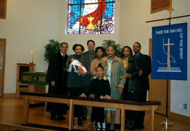 Ava's baptism 2001 Ava's Godparents, Ron and Nadine 2001 Uncle James holds Ava at Thanksgiving 2001 taking a much-needed nap 2001