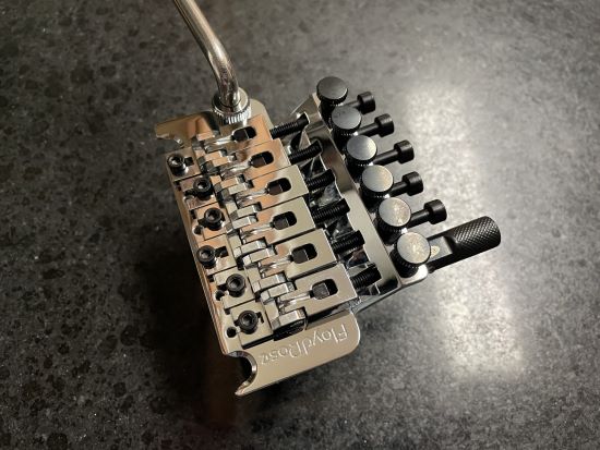 w/ EVH D-tuna (black); Kaish stainless steel CNC saddles & block inserts; Original Modern chrome arm |