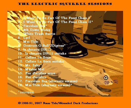 songs 1-13 released as the 2007 The Electric Squirrel Sessions CD, along with two outtakes, two alternate versions, and I Want To Be Part Of The Food Chain split into two parts
