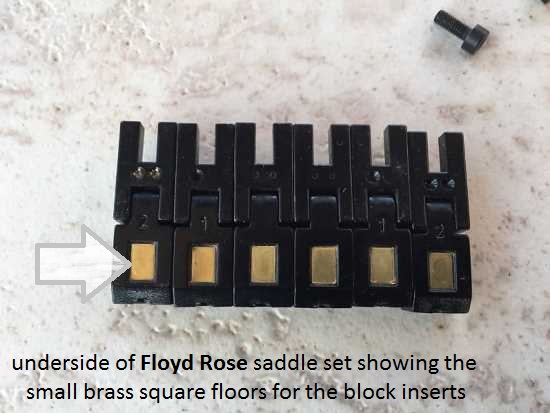 For old Floyds where I am able to salvage the saddles, they can be locked in place and don't pivot on the hinge, which allows for the fine tuner to turn sharp/flat on the string lock screw. And/or the block insert is stuck inside. I typically then soak them in boiling water and that generally loosens everything. And occasionally I have to remove the small brass square floor at the bottom of the saddle to get the insert out, but I'm usually able to tap the brass piece back into place later.
