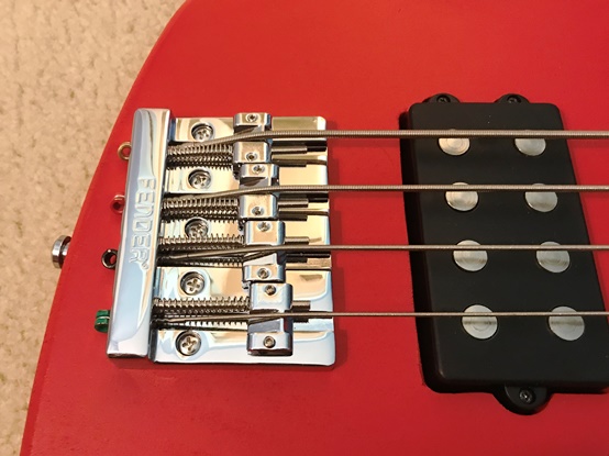 Well, you know there are going to be some modifications to a $110 bass, right? First, I swapped the stock strap buttons with chrome Schaller straplocks. I replaced the chrome SX neck plate with a chrome blank one, and I junked the stock white pickguard for a red pearloid one I picked up on eBay for $20. So what did I keep? I thought the stock chrome tuners and stock chrome knobs were sturdy, and the pots, output jack, and wiring were surprisingly clean. That left the bridge and the pickup. $50 should take care of those.