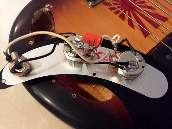 I decided to rip the stock guts out and replace everything with quality parts: 2-250K ALPHA pots (volume/tone), a Switchcraft jack, and an Orange Drop .1 capacitor. I wired everything up and although it looks the same, it now has top-of-the-line components under the hood!