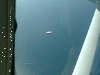 She took a picture of the blimp out of the window.