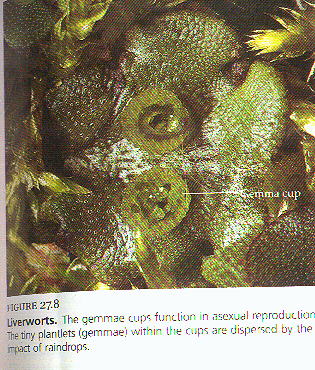 called gemmae, which are bounced out of cups on the surface of the gametophyte by