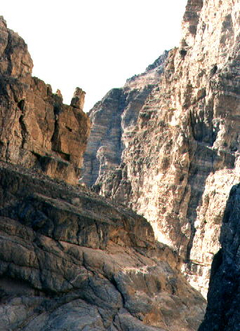 Titus Canyon, a snaking, steep gash. Feel the polished black marble. How many layers equal a million years? |
