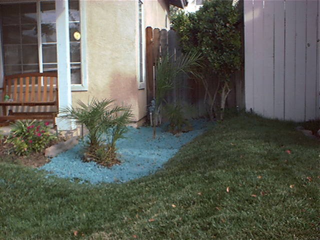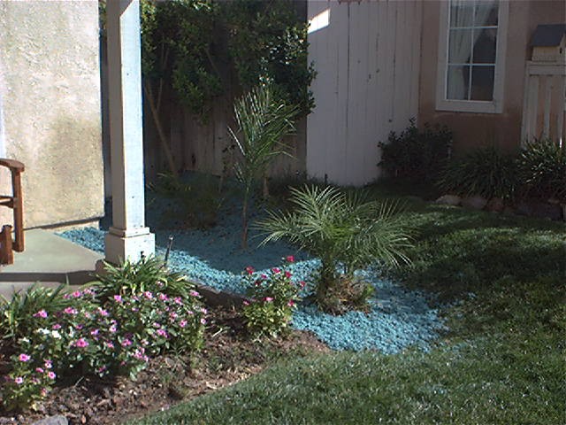 We tore out all the big bushes and Canna, and left the palm trees and then planted some grass patch so we don't have to deal with weeding as big a flower bed!