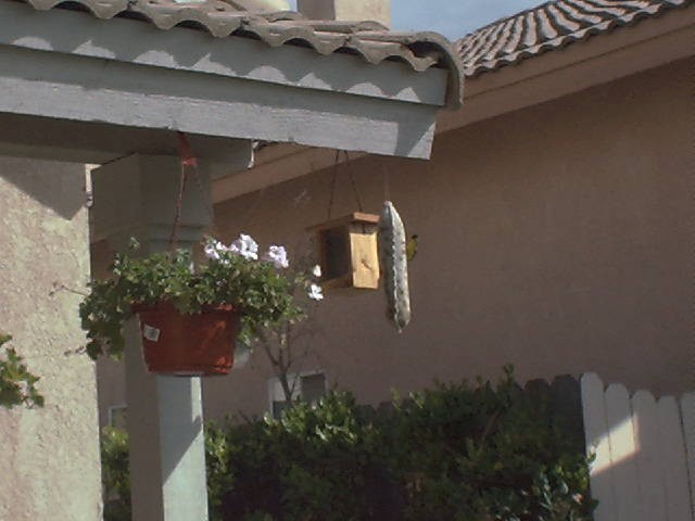 Here is one of my birds enjoying some thistle seed! Usually I have at least 10 birds on that bag at once, but they are camera shy!