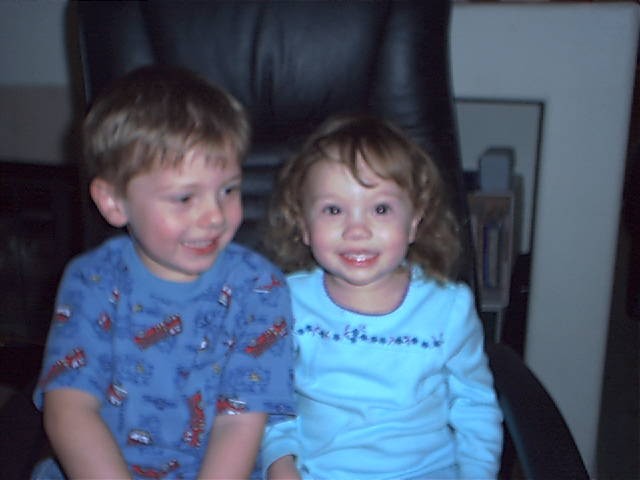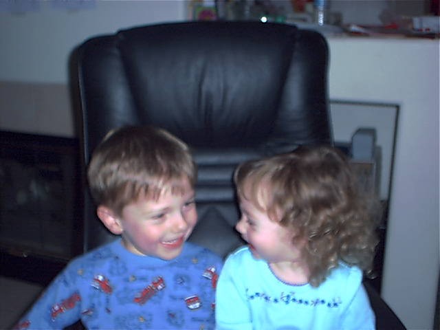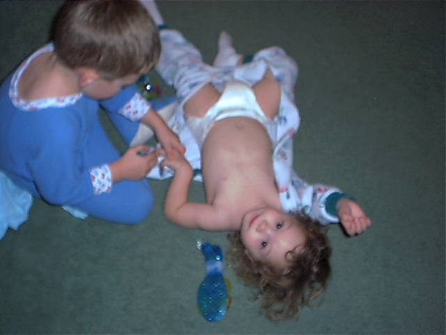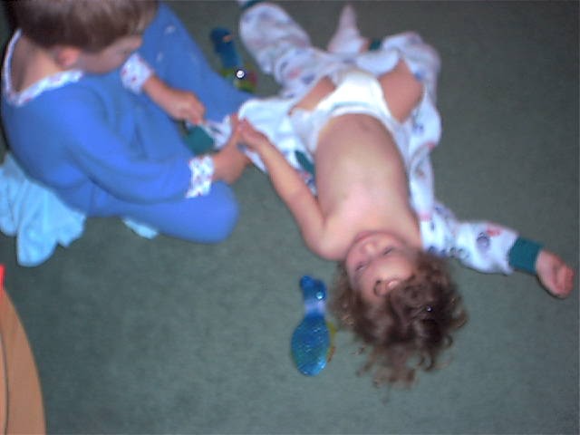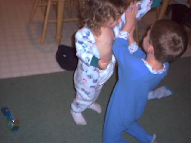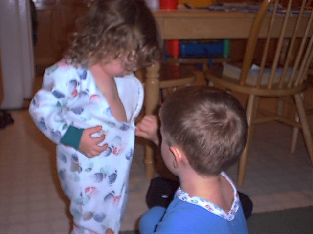 This month is almost over, so I thought I would put some more pics up to show how well the kids interact. These next ones are of Kevin helping Jessica get her nightie on!