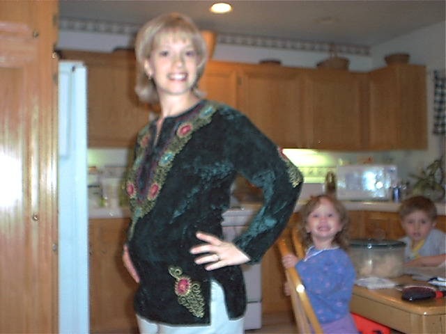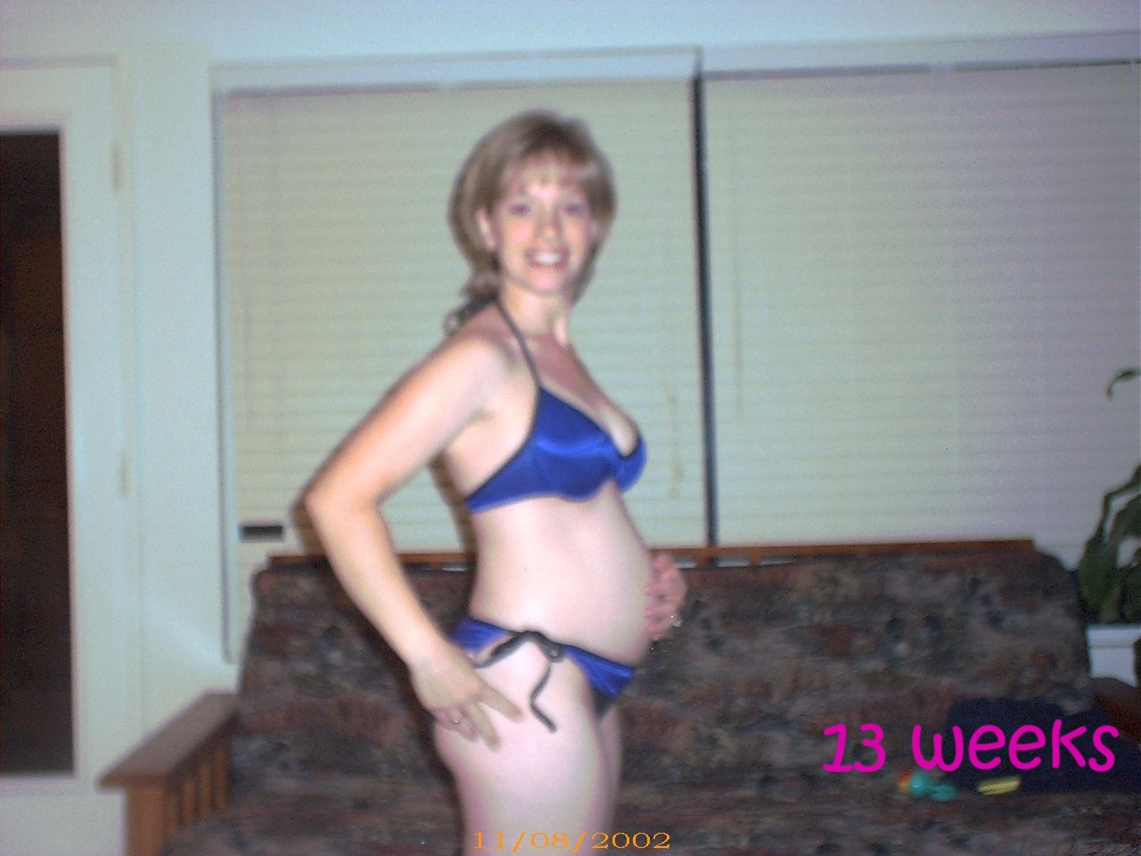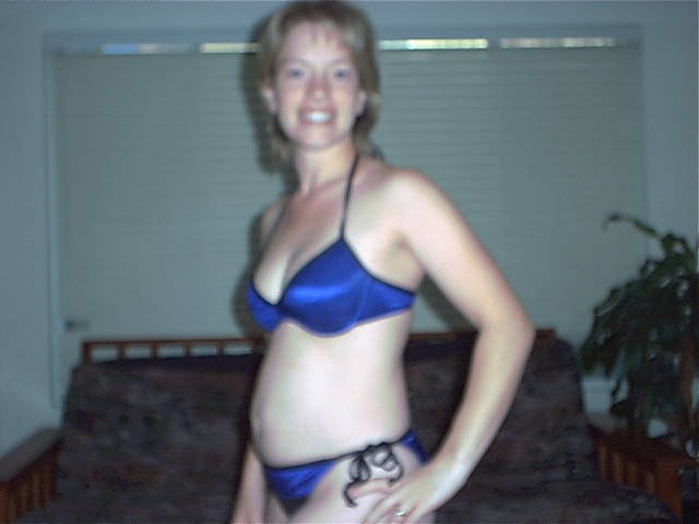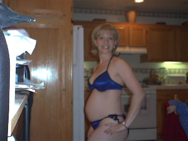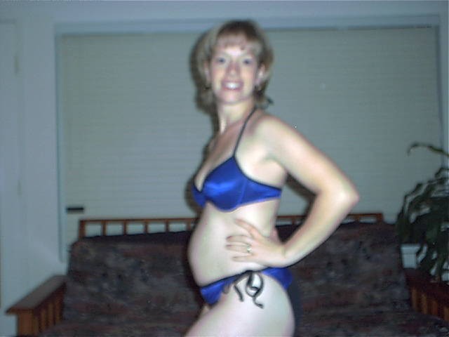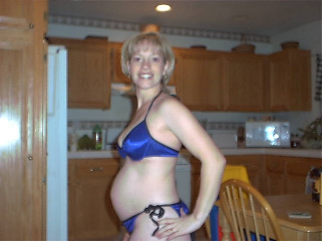 On September 4th, I (Janet) found out that I am pregnant with our third baby! On the 23rd, we went to an appointment with a new OB here in Temecula Valley. After an extensive talk about the possibility of a VBAC,then an exam (you know, girly girly stuff) we had the long awaited ultrasound! We found out that I was at the time 6 weeks and 3 days pregnant, putting our conception date as August 23. Gee, hmm, the day after my birthday! heh heh heh! Sounds about right *blush*. Anyway, our first ultrasound picture is below, as well as some "bikini shot"pictures I am trying to take on a weekly basis! Enjoy watching me grow fat, er, I mean with child!