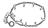 Siguiendo los números desde 1 a 9, señalados por la flecha en la gráfica, se dice: un Padre Nuestro y tres Ave Marías, después de cada salutacion, así: