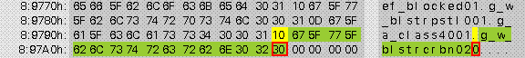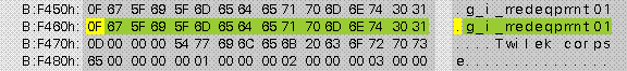 First we alter the 2nd medpac lable in the corpse to accomodate our 11 [0B] byte lable for g_w_null007. Don't forget to zero the trailing bytes.