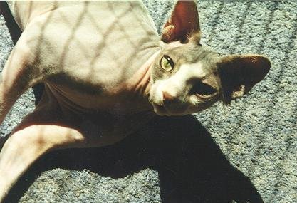 named George Burns and Jinjorbred's Queen Noor. Shiva is a pet quality Sphynx, although