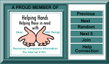 This Families On The Internet site owned by .Cathy A. Smith [ Previous 5 Sites | Previous | Next | Next 5 Sites | Random Site | List Sites ] |