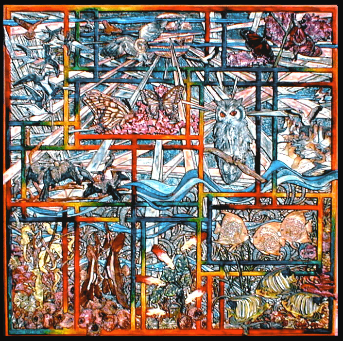 | Medium: wood carved panel/oils | Size: 60" x 60" | |||||||||||||||||||