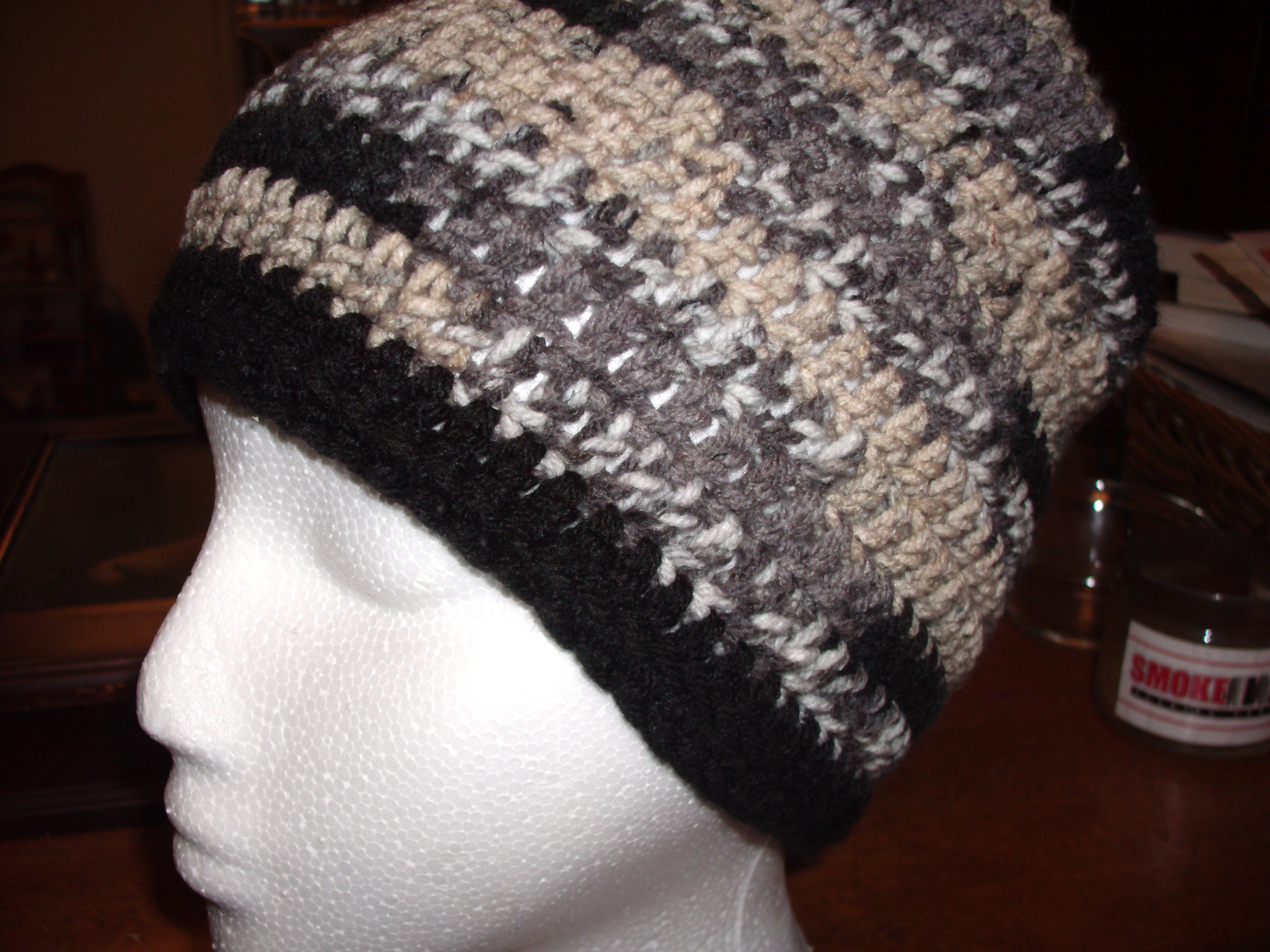Last round: The last round is worked in HDC in the back loops. Decrease every 8 stitches to give a snugger fit around the brim edge. Crocheting in the back loops will give it a ‘finished edge’ look. You don’t have to do this, but I would at least recommend the decreasing so that the hat will fit properly and not ‘fan out’ at the brim edge. Weave in ends.