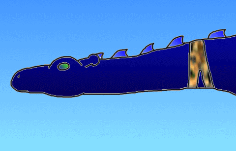 Deep midnight blue spreads smoothly over knobby hide, round barrel with the silence of witching hour's depth. Darkest cobalt caresses jabbing wingspars with indistinct scrolls, slipping airily over shard-thin, soft membrane, silently stretched, catching starlight as it lances past. Large, glowing eyes spin sluggishly; burly, phlegmatic head, streamlined in its contours, swings slowly from side to side, if at all. Thick tail trembles with each rare, lumbering movement of near-black appliqu, and ivory claws flex and curl, the only sign of quickness in a stoic form. A shadow, an immobile silhouette, a fragment of night in the midst of day, he does not reflect the light that washes so benevolently over him. Motionless, impassively sucking in brightness, he lurks, quiescent.