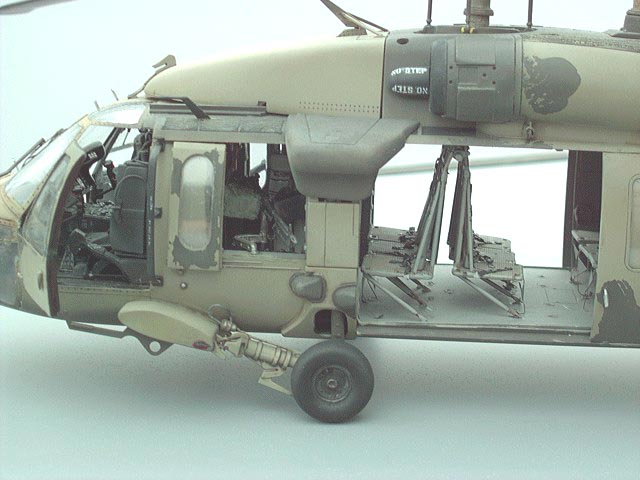 Now, lets get it all together and paint it. I chose the Tinnin option with its scoreboard of POWs carried, since I really love these worn out flakey faded schemes. Do your final assembly, and close of your interior with card or the doors, as you prefer. I used the excellent UH60 Black Magic Masks from Meteor Productions, and they are awesome!. Here is my color scheme: