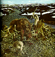 Neanderthals, one of our early ancestors, were very primative hunters. They hunted, scavenged, and when they had no food, resorted to canniblism. When someone died, before they buried them, they took out their stomach and ate it for food. As for meat, they hunted and ate horses, reindeer, and wild cattle.