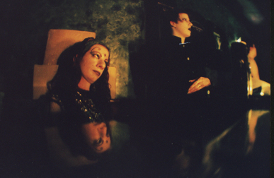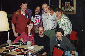 BRYNA, TIM and BRIAN, along with our friends, the "CHILVALROUS DOGS" and WAIF FM Deejay MR LOCKHART all relax after the show at the historical SOUTHGATE HOUSE in NEWPORT, KENTUCKY, 2000