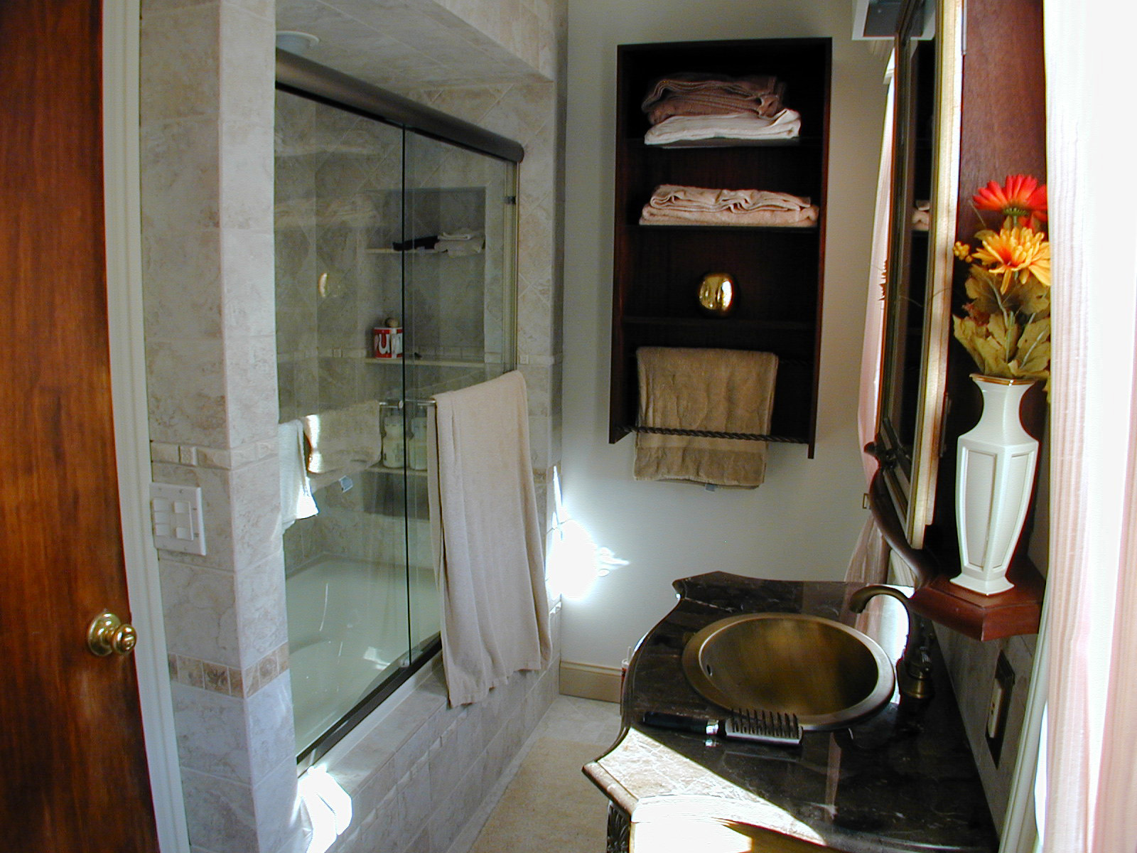Mud Shower Stall. Tuscany Travertine Tiles