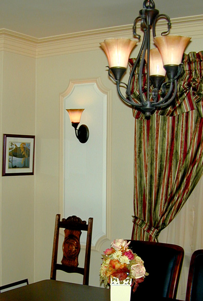 Custom Sconce Panels/Silk Window Treatment