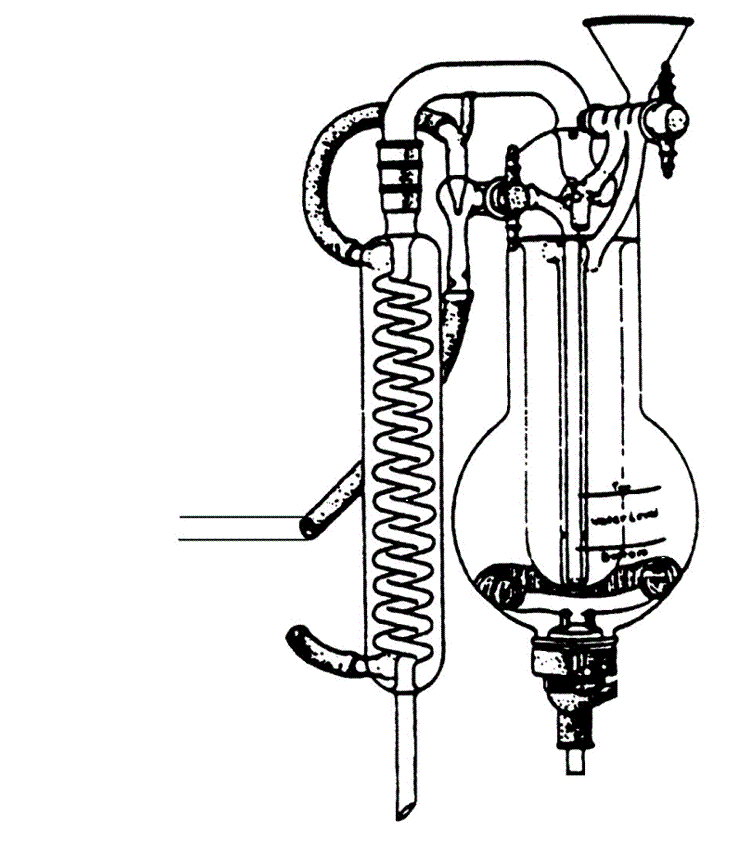 Comtamination of one sample by the previous sample is eliminated, because the spent sample is rinsed out hot, and the distilling chamber may be rinsed as many times as necessary.