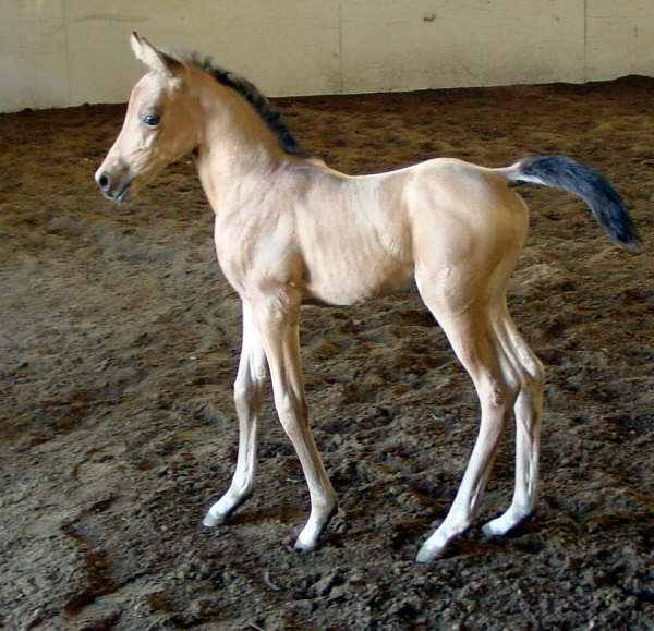 FLASH! IT'S A BUCKSKIN FILLY! (SKEETER CHEX [AQHA] X SA FANCIARR by GAZARR++ out of HALIMAS FANCY) Eagerly Anticipated by Deborah Baker of Debonaire Farms, Phelan, California {mare owned by Rebecca Daugherty of Sunny Brook Arabians} |