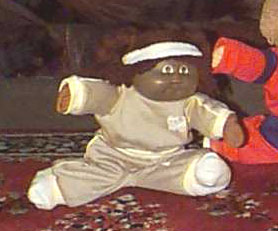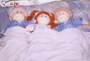| Yvonne Claudia (previously known as MaryEllen Blanche) shows off her new dress and bunnie pal at her adoptive home. | Here's Kyla Rue in her new Moon sleeper along site her sister Jade Rae. Aren't they adorable! |