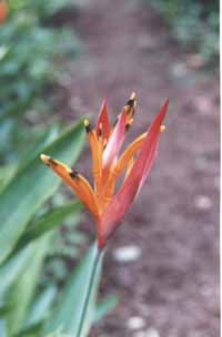 One of the most prolific species of flowers to be found in Costa Rica belongs to the genus of Heliconia. This is Heliconia psittacorum, commonly called Andromeda. |