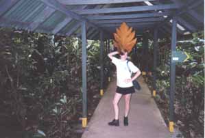 This is on a ground level walkway. We had just come up from one of the trails on the property, and found this HUGE leaf lying in our path. We thought it looked like a gargantuan, prehistoric oak leaf; a perfect example of the lush abundance to be found here. |