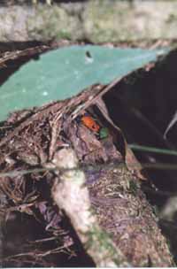 Here is one of the poison dart frogs, which is playfully called "blue jeans" because of his blue limbs. The species in Costa Rica are not severely poisonous, and are a relative of the poisonous frogs that coined their name. |