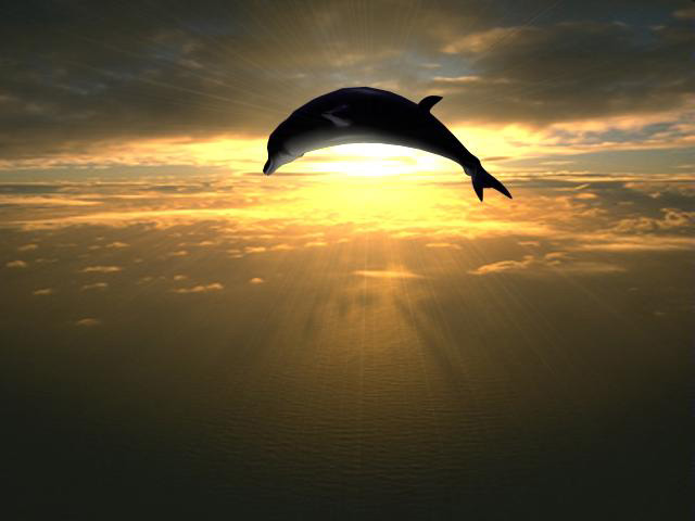 Графический Дельфин на фоне заката....