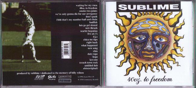 Once Again I bring you an extreamly rareCD! it looks like the 40 oz Skunk 3rd pressing but it is an import as it has a LC 5149 Licens number it is from FRANCE!, and has a small barcode that ussually comes with an import from over sea's. Im not sure where to classify this cd as it's not even in the skunk.com discography from sublime cd's! so i know this has got to be hella rare and its year of printing is 1996! has one of the coolest cd art ive ever seen for ANY! 40 to freedom import and also has a symbol spine and also no explicit lyrics warning! It is on the French Label Community Records!! There were infact few pressed as Ive been told there were 200 Pressed and few are still known to exist!!! Enjoy the pics!