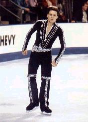 Tim Goebel - wearing blue pants and blue velvet vest with cream colored shirt and skating to dramatic music which changed to slow sad music. Triple lutz, quad sal/triple toe, triple axel/double toe, quad toe, triple axel, and quad sal. Need we say more? Best I've seen Tim skate. His presentation really does seem improved, but he is still easily beatable in that area. Technical: