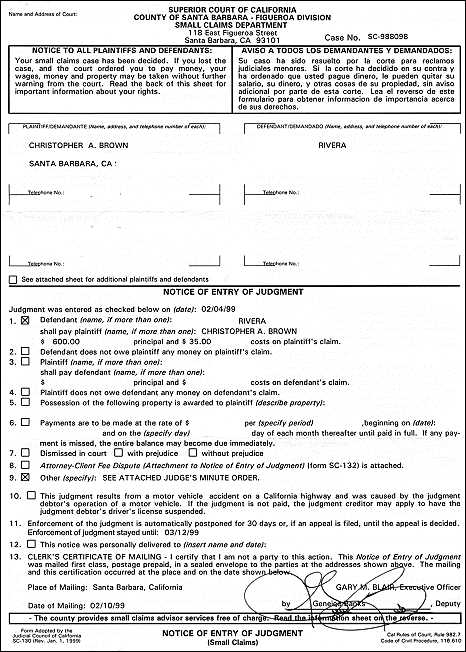 Small Claims Judgment