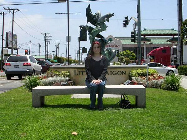 I am in front of a beautiful fountain in Little Saigon, a really nice place in CA. I had to beg Sinclair to take my picture in front of this fountain; he was afraid we were going to get into trouble for some reason. I really didn't care (yeah, I wear the pants & the skirts in this relationship)!
