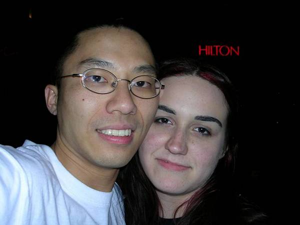 We took this picture outside on the balcony of our hotel room; in case you can't tell from the picture, it's dark outside. (Boy, do I look sleepy...)