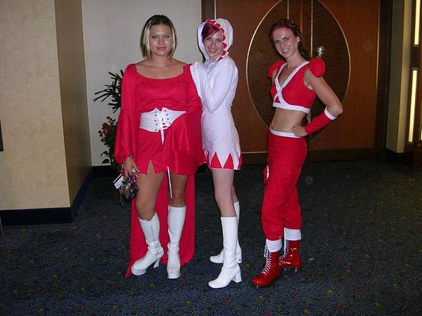 Here are some FF mages (I believe) from the first original Final Fantasy. '-_- * sigh * Like if there aren't enough Final Fantasy cosplayers as it is, people actually have to go back to the very first one! Still these ladies did a good job; and just because I don't like Final Fantasy doesn't mean everyone else shouldn't.