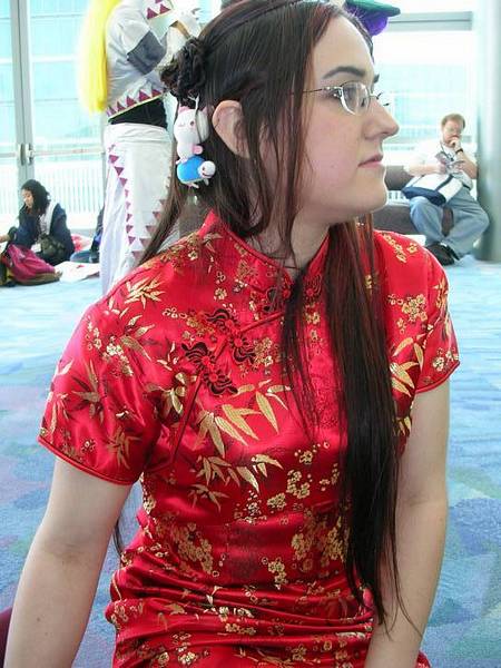 Another photo of Lisa in her red dress. Isn't she lovely? I'm so glad we found those dresses (thanks again Jesse!). Check out her hair ornaments too, aren't they cute? I believe this photo was taken while waiting in line for Tomokazu Seki's panel. We were lucky we had the place we did. We were the last ones still in the air conditioned hallway (instead of waiting outside in the hot sun).