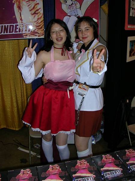 I'm told by a very reliable source that these girls are cosplaying as Under17, who could not make it to AX due to illness. Well, even if they're not cospaying as Under17 at the very least these girls were in the booth promoting the band! ^-^