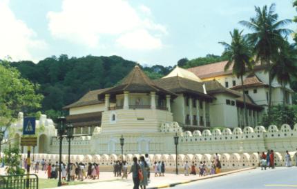 Sri Dalada Maligawa, which enshrines the Tooth Relic of the Buddha, is the holiest shrine in the entire Buddhist world and to the people of Sri Lanka. The Tooth Relic was brought to Sri Lanka by a princess from Kalinga named Hemamali, securely wrapped in her tresses, when King Kirti Sri Meghavarna (301-328) was ruling in Anuradhapura. The temple is surrounded by a solid wall whose gate was originally flanked by two prosperity vases, only one of which still remains.