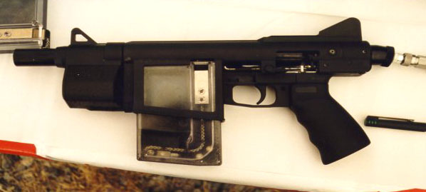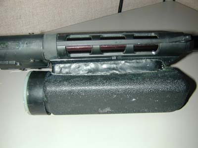 Click this link to take a look at Richard "Ronin" Allen's TS1K. Pretty nifty package when going into close quarters bunkering action! Richard sawed off the front end of his gun and is using a VL clip mod to feed rounds into the gun's clip. | |