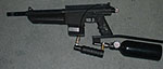 Yet another compact TS1. This one is called the "stubbie" which was made by Robb Lussier, also known as "Gumby." Robb works for ATS and is their their technical man who fixes your guns when you send them in for repairs. | |
