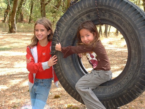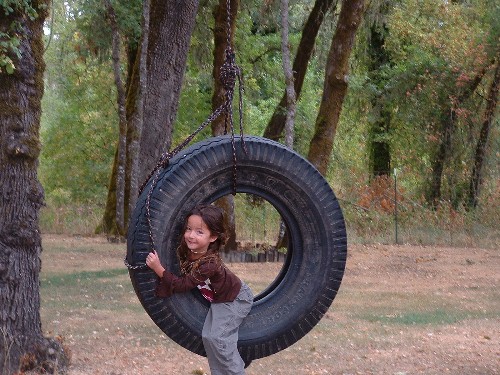 Playing on Papa's tire swing.