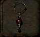 This earring has been made from the hardened shell of a segmented, larva-like creature. Its shell has been treated with some sort of glazed finish that makes it look disturbingly alive. The wire that hooks to the ear looks like it is part of the larva itself, perhaps its stinger or antenna. To activate the earring's power, the wearer must prick his thumb with the stinger, allowing it to bond with its new owner. When "awakened," this earring helps protect the wearer from attacks, giving the wearer's skin the same strength and durability of the larva's shell.