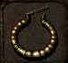 This ancient copper earring has a series of grooves cut along the inside. Although there doesn't appear to be an obvious way to wear it, it can be unlocked by hooking your fingernail into the third groove from the top and pressing inwards. Not only does this allow the earring to be worn, but it also opens up a hollow compartment inside the earring where messages or other small items can be stored. The earring might be worth more to a merchant as a result.