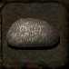 This dark stone is covered in dust, as if it has been sitting here for years - it looks like a piece of one of the statues that was chipped away. A tracery of strange runes and markings cover the stone's surface.