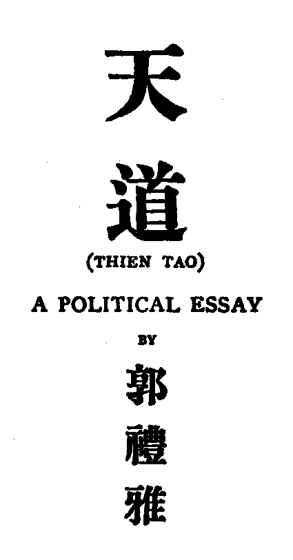 "WHAT," said Juju, "0 great Tao, do you recommend as a remedy for the ills of my unhappy country?"